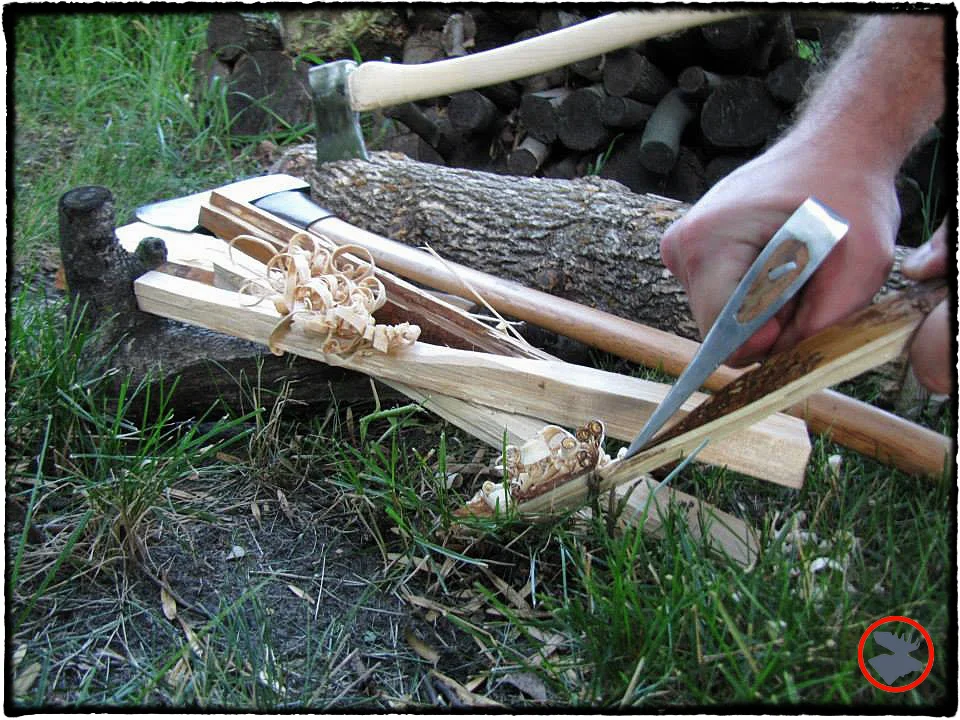 Sharp! Easily making feather sticks for the fire with the Craftsman hatchet. You won't be able to put this kind of edge on most axes found on hardware store shelves today.